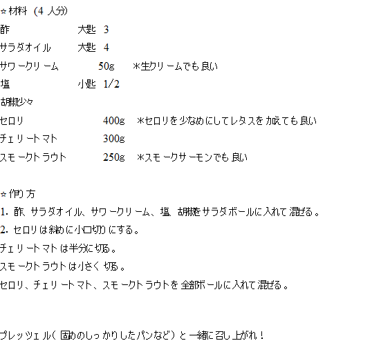まだまだサラダの美味しい季節です。セロリとスモークトラウトのサラダです。
