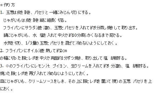 豚ひれ肉とじゃがいもの料理ですが、玉葱、パセリがお洒落さをプラスしてます。