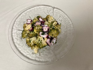 🔹ブロッコリの香草サラダ:茹でたブロッコリにタコを合わせてタラゴン風味のドレッシングで 🥗🥦
