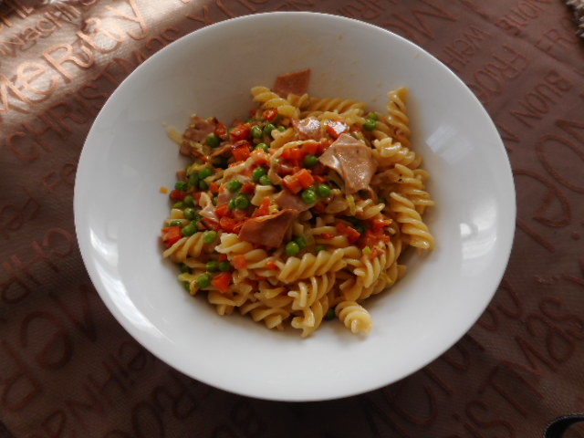 マカロニと野菜、ハムのチーズクリームソース (Älplermakkaroni mit Gemüse und Schinken)