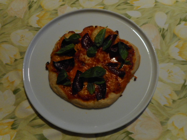取り出して、残りの2つのピザ゙もオーブンシートを敷いた熱い天板に のせて焼く。