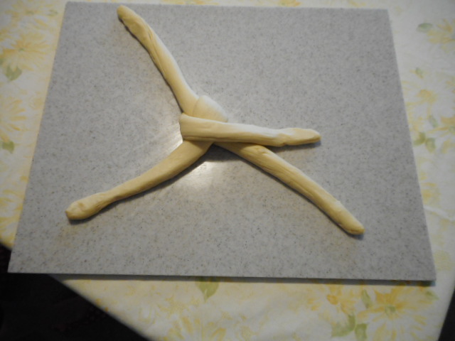 1つを2本にわけて、約30cmの細長い棒状に伸ばす。